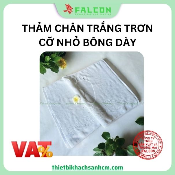 Thảm chân là vật dụng không thể thiếu trong phòng tắm, phòng ngủ hay lối ra vào, giúp giữ sạch sẽ và tạo cảm giác thoải mái khi sử dụng. Trong đó, thảm chân trắng trơn cỡ nhỏ với thiết kế đơn giản, chất liệu bông dày, thấm hút tốt là lựa chọn lý tưởng cho các khách sạn, spa và hộ gia đình. Hãy cùng Falcon khám phá sản phẩm và những ưu điểm đặc biệt qua bài viết dưới đây!
